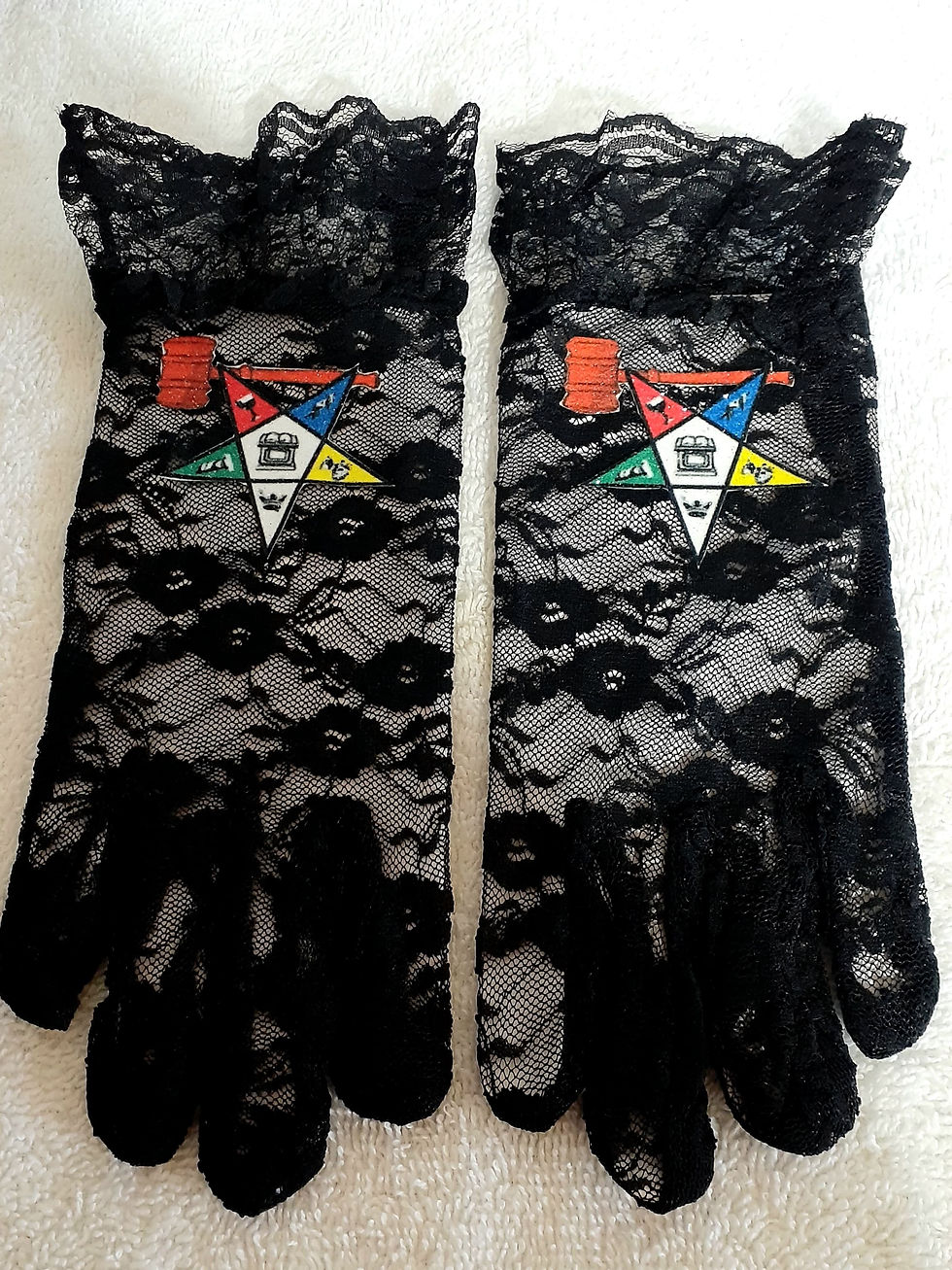 OES - Order of The Eastern Star logo emblem black lace gloves