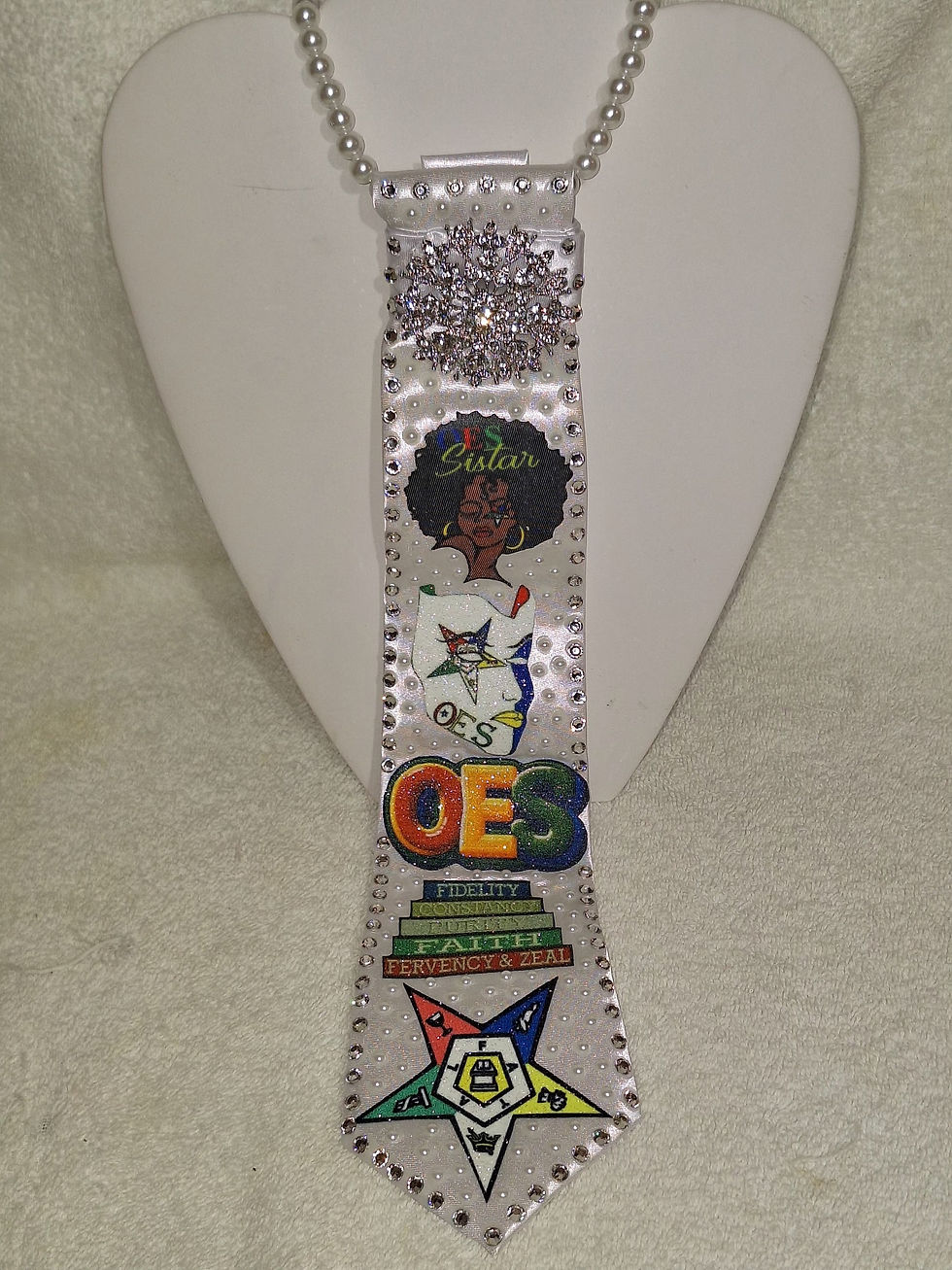 OES - Order of Eastern Star necktie necklace embellished with pearls & jewels